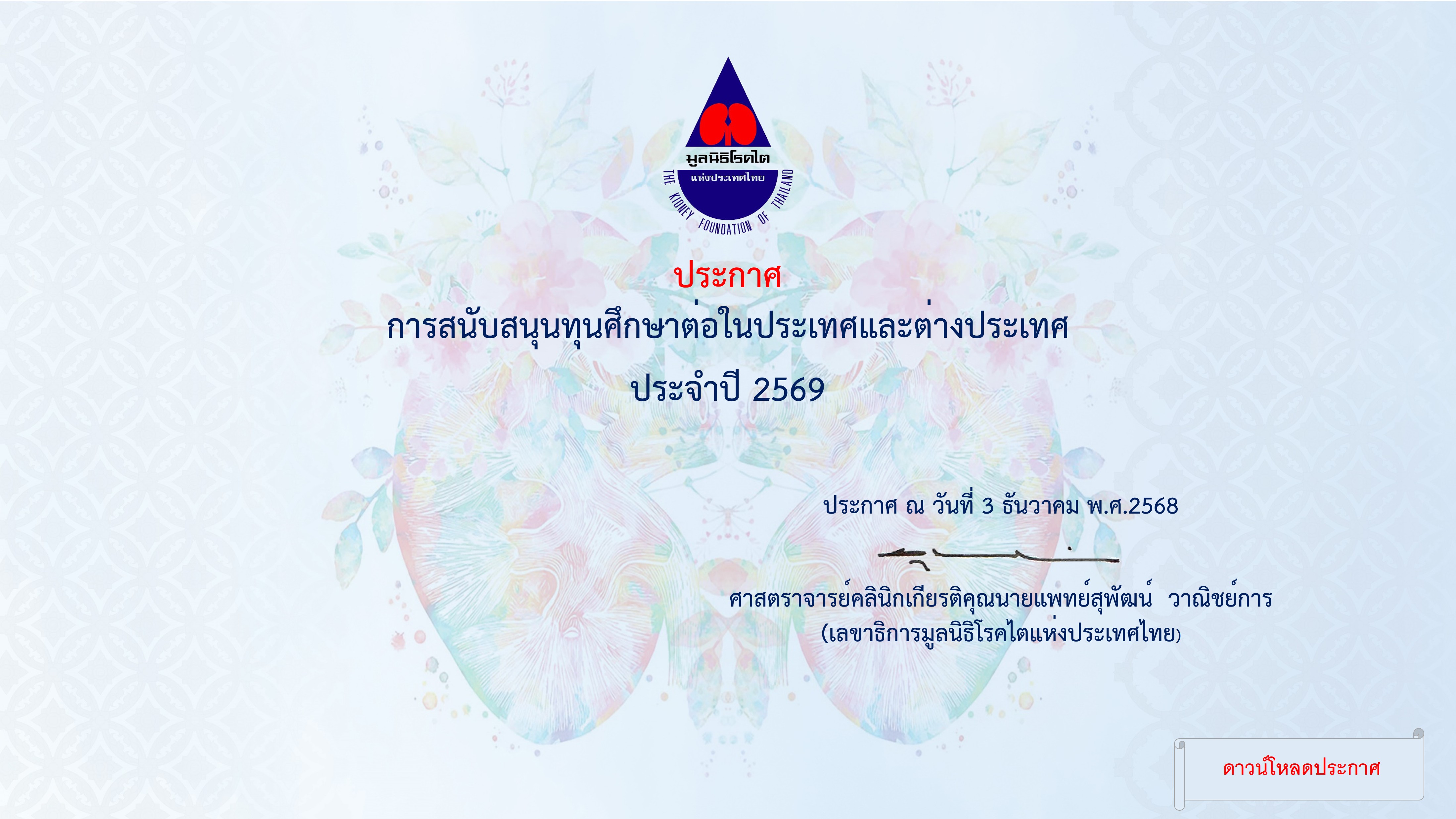 ประกาศการสนับสนุนทุนศึกษาต่อในประเทศและต่างประเทศ ประกาศ ณ วันที่ 3 ธันวาคม 2568